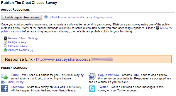 automatically post your survey to your Facebook account or your Twitter accounts