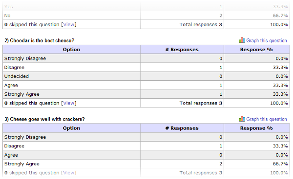 Below is quick peak at some of the results for our Great Cheese Survey. When you're ready, try surveyshare for free!